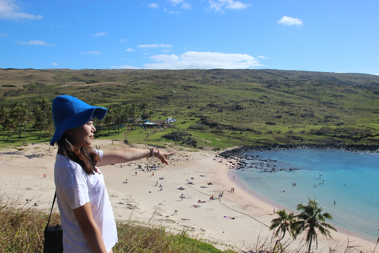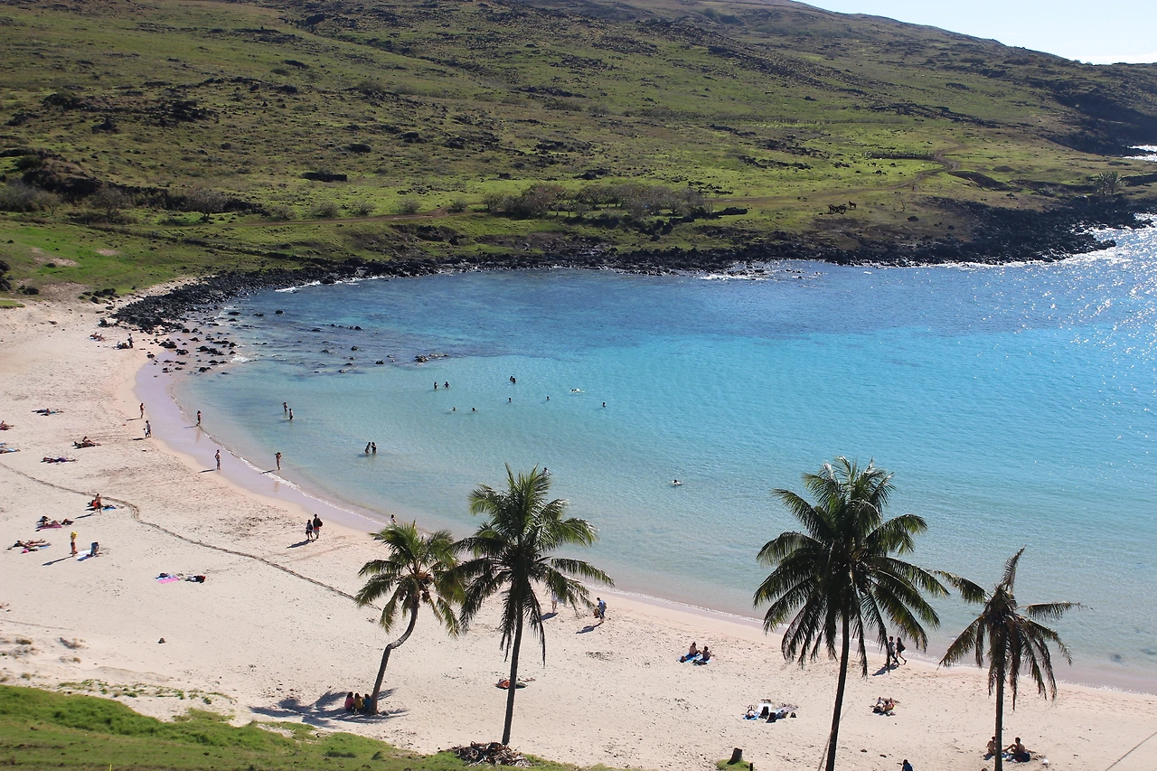 다음은 '아나케나(Anakena)'해변! 이스터섬 유일의 비치다. 이스터섬은 사실 수영을 즐길 수 있는 해변이 별로 없다. 태평양 한가운데다 보니 파도가 거세고 바람이 많이 불기 때문이다. 하지만 아나케나 해변만큼은 다르다. 에메랄드 빛이 감도는 아나케나 해변에는 많은 여행객들이 선텐을 즐긴다. 거의 다 벗고 있는(?) 원주민들도 만날 수 있다.