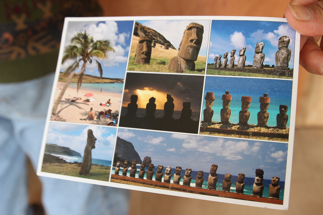셋째, 이스터섬에서 한국으로 엽서 보내기다. 모아이가 가득한 엽서를 골랐다. 정말 갈까? 이스터섬에는 우체국이 하나 있다. 두근두근. 한국에 왔더니 정말 잘 도착해 있었다!
