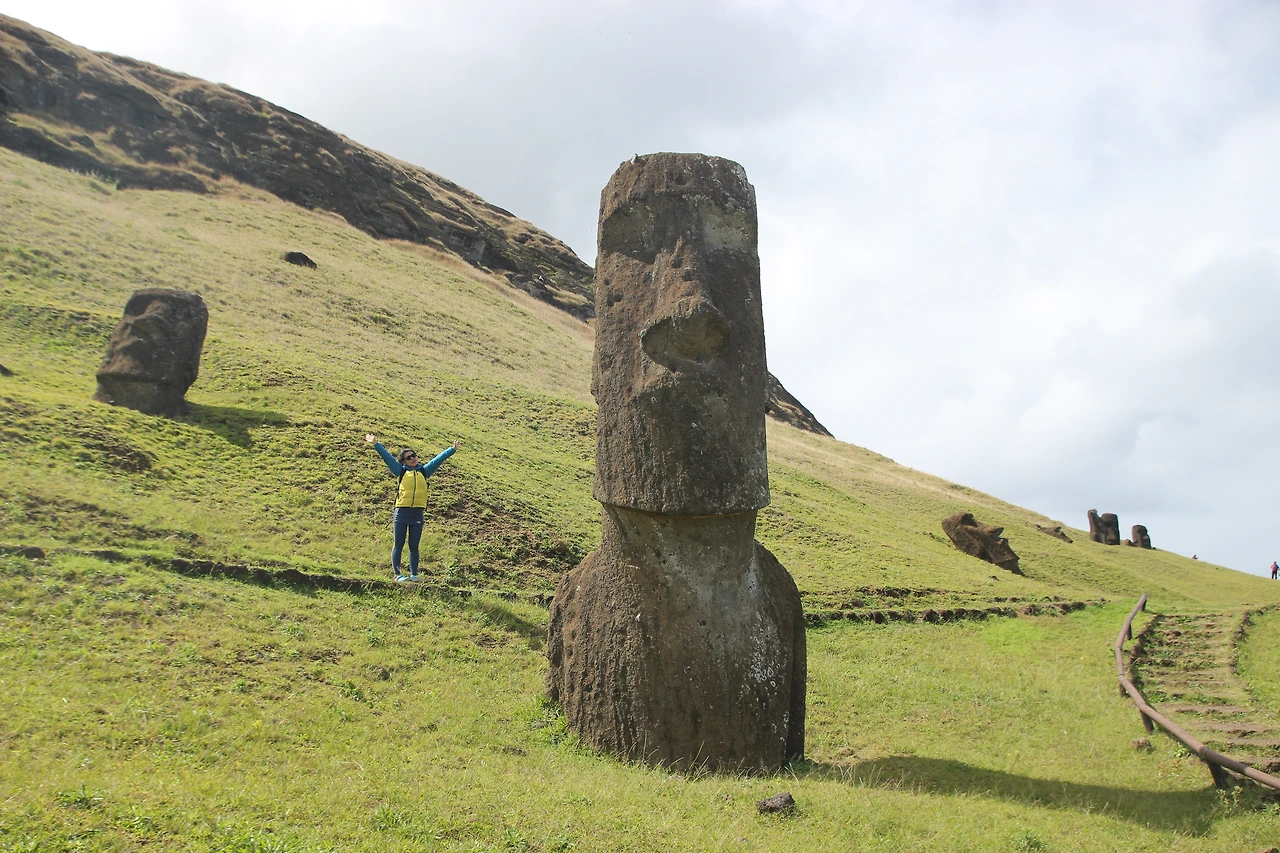 이어 일명 모아이 제조공장이라고도 불리는 '라노 라라쿠(Rono Raraku)'에 갔다. 암석으로 이루어진 화산으로 이 곳에서 수많은 석상들이 제작되어 옮겨졌다고 한다. 만들어지다가 만 석상들도 있고 운반되다가 버려진 상태로 누워있는 모아이도 있다. 가장 큰 모아이 석상인 '엘 히간테(El gigante, 거인)'가 이곳에 있다. 크리가 무려 21.6m 무게가 180톤에 이른다.