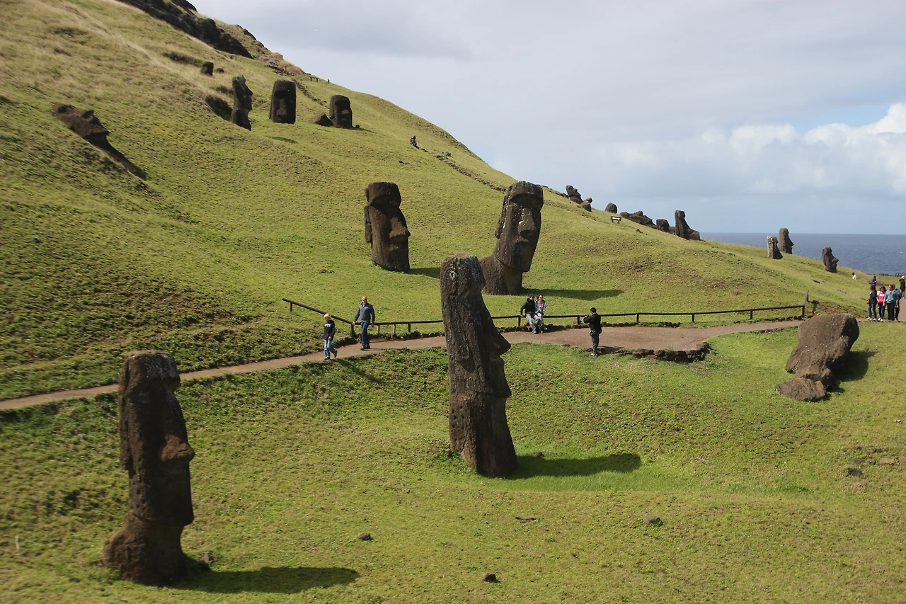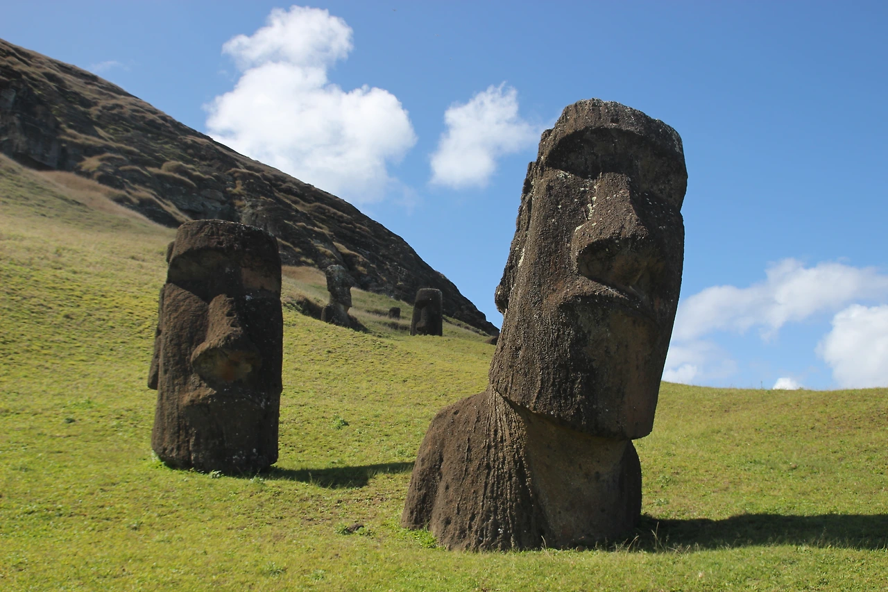 이스터섬에는 900여 개의 모아이가 존재한다. 섬의 북쪽보다는 남쪽 해변가를 따라 우두커니 하나씩 서있다. 부족 간의 전쟁으로 넘어져 있거나 얼굴이 없는 채 서 있는 모아이가 대부분이다. 황갈색 튜터, 다공질 탄산석회의 침전물, 화산성의 응회암으로 만들어진 모아이는 하나를 만드는 데 30여 명의 인원이 꼬박 1년은 걸렸을 거라 추정되고 있다.