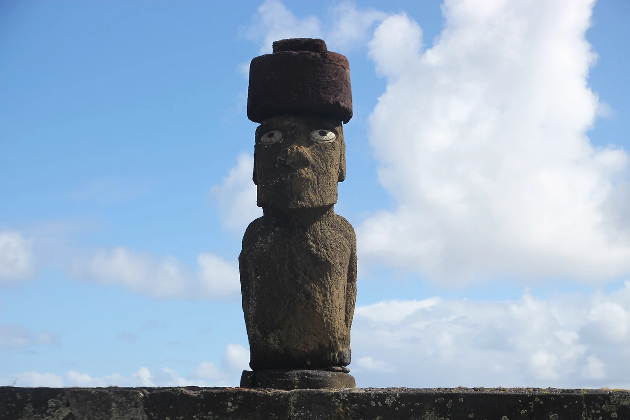 그리고 바로 옆에서 유일하게 눈을 가진 모아이를 만났다. 원주민들은 모아이 석상에 눈동자를 넣음으로써 신성함을 가지게 된다고 믿었다. 하지만 부족 간 전쟁이 벌어지면서 서로 눈알을 빼기에 이르렀다. 그래서 모아이마다 눈이 없는 것이다. 유일하게 눈이 있는 하나 남은 모아이였다.
