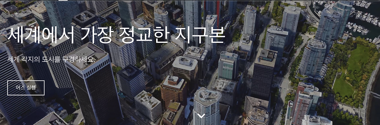 먼저 구글 어스를 접속해보도록 하자. 세계에서 가장 정교한 지구본, 세계 각지의 도시를 구경해 보라는 여행자의 마음을 한껏 설레게 하는 문구로 사용자를 유혹한다. 어스 실행을 클릭하면 짙푸른 바다가 아름다운 우리의 행성, 지구의 둥그런 모양이 화면 가득 떠오른다.