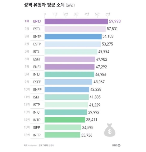 이 글을 쓰기 전에 '재미로 보는' MBTI 별 소득 차트가 있어서 봤더니 전체 16가지 유형 중에서 INFP가 가장 돈을 적게 버는 유형이라고 한다. 재미로 보는 거라지만 또 짜증이 나기 시작한다. 내가 돈 욕심 없는 거 어떻게 알았지. 연봉보다는 내가 재미있고 즐겁게 할 수 있는 일을 하는 게 나에게 더 중요하다는 거, 회사에게는 굳이 알리지 않기로 한다.