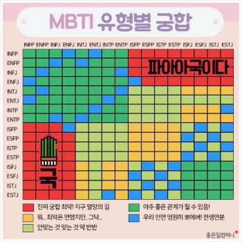 남편과 나는 무서울 정도로 서로 성향이 다르다. 연애 기간이 1년이라 겨우 결혼했지 더 길어졌더라면 분명 크게 싸우고 헤어졌을지도 모를 일이다. 이렇게 서로 좋은데 우리는 왜 이렇게 다르지 했는데 얼마 전 남편이 처음으로 MBTI 검사를 하고 나서야 드디어 증명?이 되었다. (사실은 남편이 이런 거 관심 없다고 귀찮다고 안 하겠다고 하는 걸 내가 겨우겨우 구슬려서 했다.) 역시 나의 예상대로 우리는 상극이었다. 나는 INFP, 남편은 ESTJ.