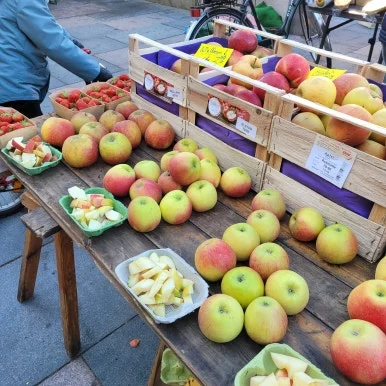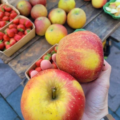 사과는 품종별로 나눠 담아 시식할 수 있게 준비해 둔 아저씨의 섬세함이 눈에 띄었다. 나는 몇 가지 맛을 본 뒤, 특히 맛있었던 품종을 골라 두 개를 샀다. 내가 고른 그 과일·채소 가게는 그날 가장 인기가 많은 곳이었다.