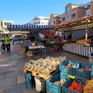 그중 부촌인 Kleinmachnow의 주민센터, 라트하우스(Rathaus) 앞 광장에는 매주 목요일마다 장이 선다. 이 날은 아들 병원 예약이 있어 아침부터 분주하게 나섰다가, 우연히 그 장터를 마주하게 되었다. 아들을 학교에 보내고 나서는 선선한 공기를 느끼며 여유롭게 장터를 둘러볼 수 있었다.