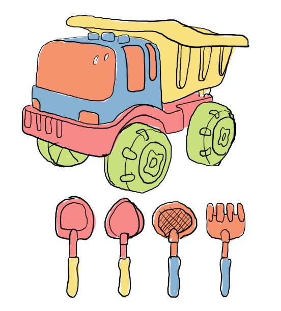 하지만 집에 있는 블록을 야외로 가져가기는 위생이나 세척 등이 걱정되었다. 그래서 준비한 것은 모래놀이 도구 세트! 모양도 지화니가 좋아하는 자동차 트럭 모양으로 준비했다.