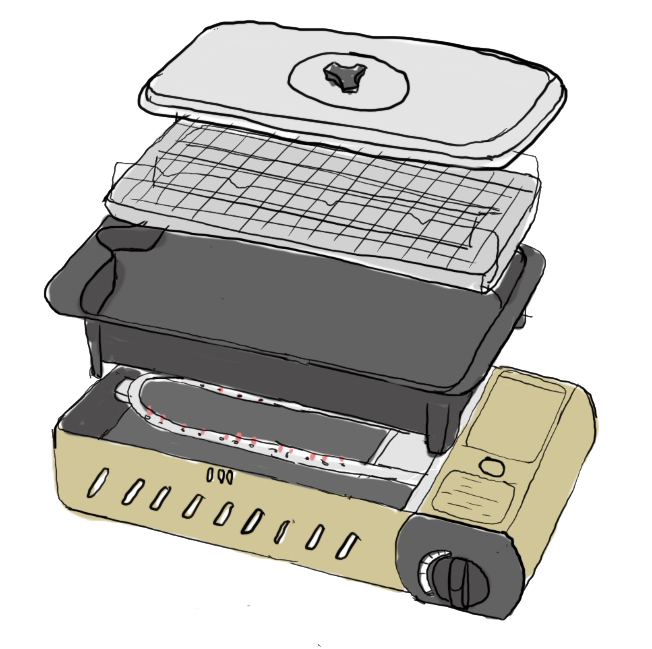 어쨌든 버너를 사야 하는데 그냥 일반적인 버너를 사면 될까? 이번에도 남편님이 주변의 캠핑 고수님들로부터 팁을 얻어왔다. 버너도 되면서 고기도 구울 수 있는 기본 팬이 있고, 거기에 꼬치구이나 라면도 끓여먹을 수 있는 신박한 아이템이 있단다.