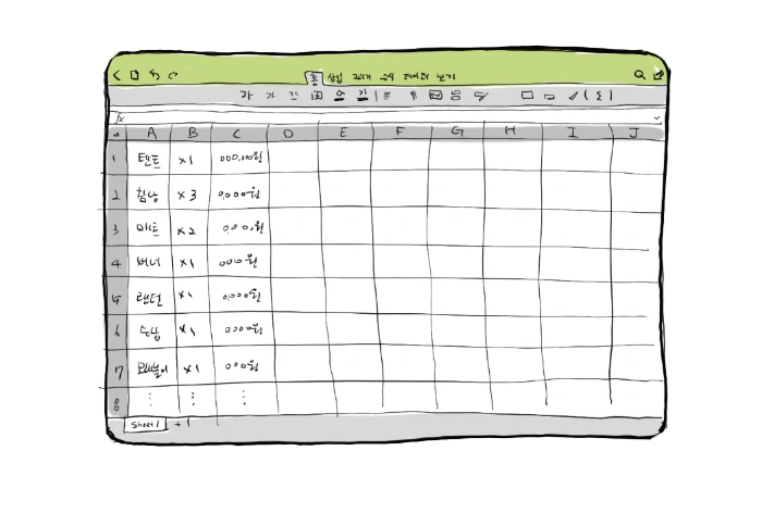 포기한 건가 싶었는데 어느 날 남편이 톡으로 엑셀 이미지를 하나 보냈다. 이미지에는 캠핑에 필요한 물품 리스트와 가격 등이 상세히 정리되어 있었다. 이것 참. 이런 걸 만들기도 하는구나.