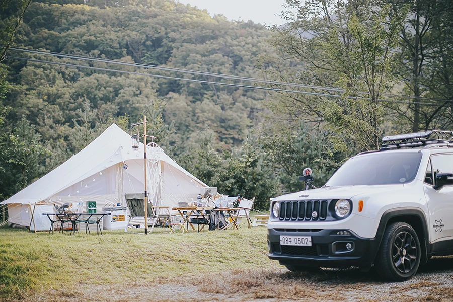 써니님은 우리와 같은 차종을 모는 오너분이었다. 혼자서 돔 형 텐트를 치고 계셨는데 처음 뵙는 분이었다. 우리는 가볍게 인사하고 써니님의 바로 옆에 집을 짓기로 결정했다. 날씨가 가을로 접어들기는 했지만 아직 한낮의 해는 제법 뜨거웠기 때문이었다. 그래서 그늘이 지는 잔디 사이트에 짐을 내려 풀기 시작했다.