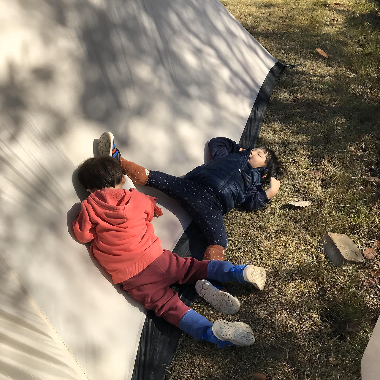 남편의 여동생 가족에겐 3살짜리 아들이 있었다. 우리 아들과는 바로 한 살 차이 동생이었다. 사촌동생이 갓 태어났을 때부터 서로 봐왔던 사이였기 때문에 사촌동생네가 도착하자마자 둘은 같이 돗자리 위에서 놀이를 시작했다.