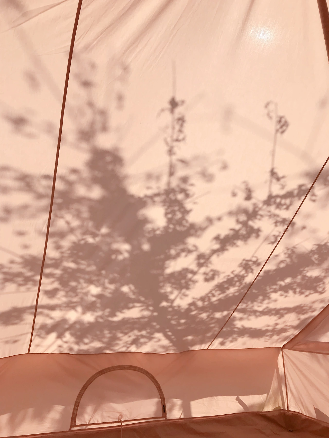 그런 단점에도 불구하고 정말 세 번째 집을 사랑할 수밖에 없는 것은 그 안에 누워서 바라보는 빛과 그림자들이 너무 아름답기 때문이다. 우리의 세 번째 집은 밖에서 보는 모습도 무척 예쁘지만 개인적으로 가장 좋아하는 뷰는 텐트 안에 누워서 텐트 위로 비치는 햇빛과 나무 그림자다.