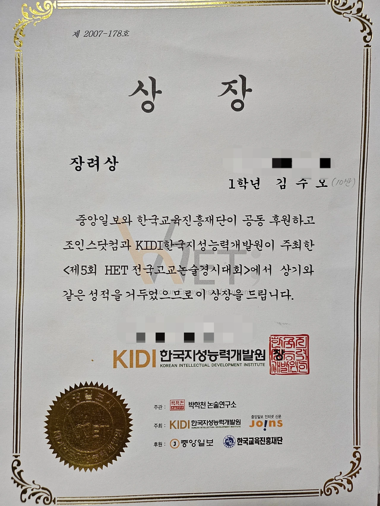 마음이 담긴 글만 쓴 건 아니다. 생각에 논리를 담은 글도 썼다. 지금 보니 정서가 담긴 글보다 상의 순위권은 좀 낮았다.