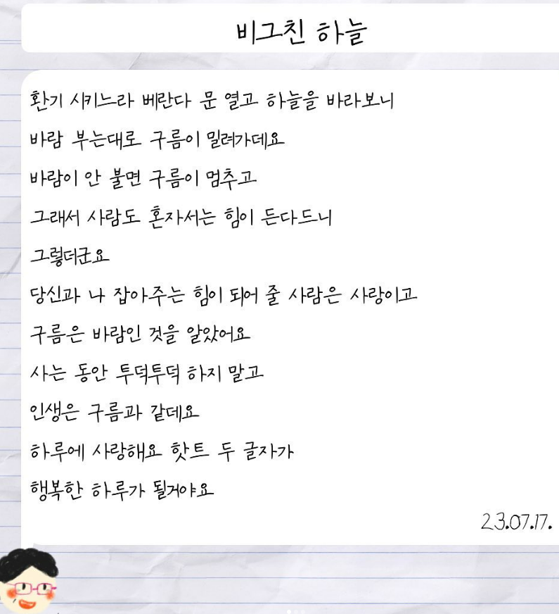 알려주지도 않았는데, 이제는 혼자 인스타에 글을 올리시는가 하면 몇몇 안 되는 팬들이 남긴 글에 댓글도 남기신다... 외로운 당신의 마음의 글을 누군가가 읽어준다는 게 위로가 되는 모양이다...