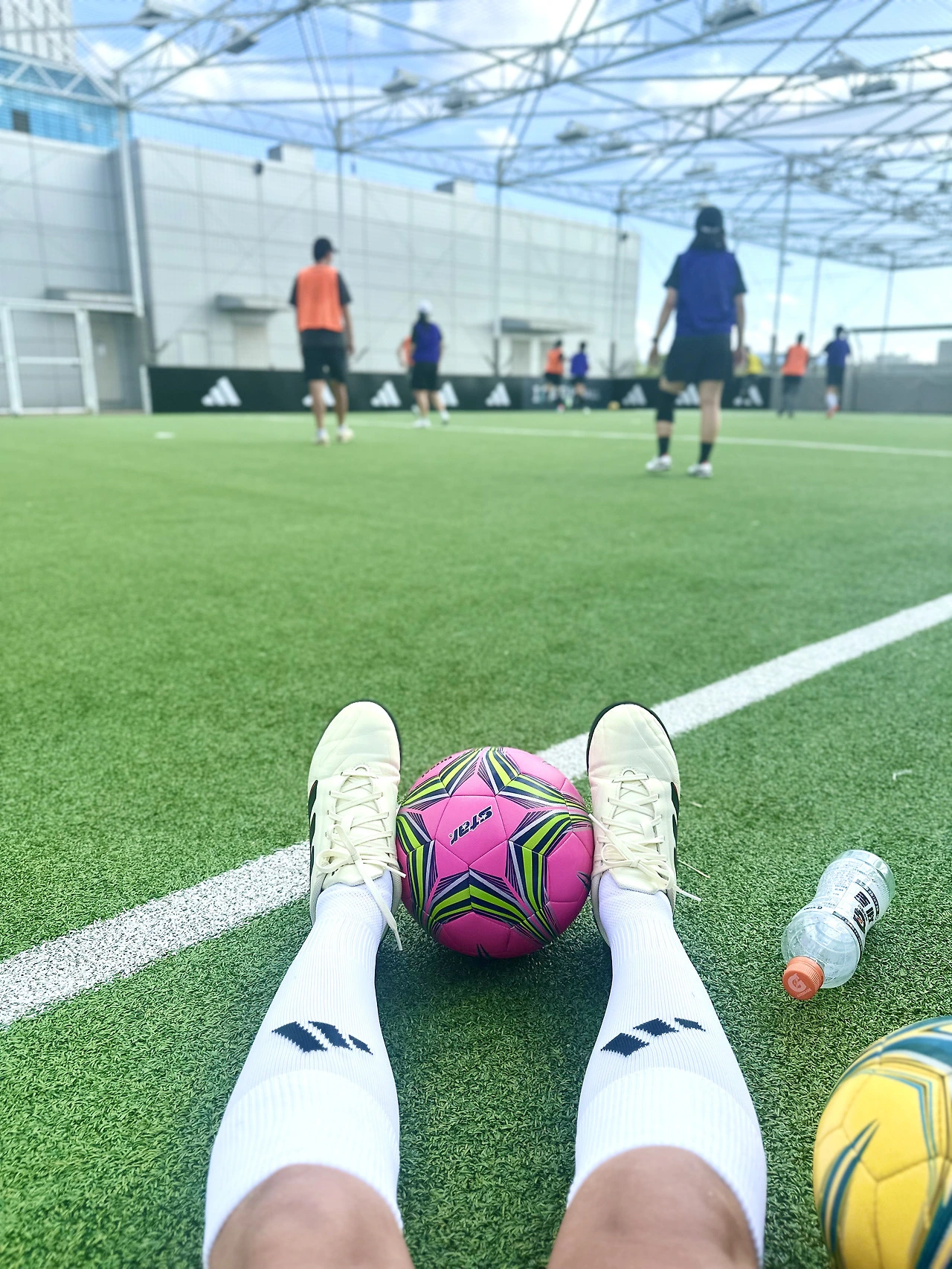 이 친구들의 말을 듣고 보니, 내가 너무 아무 생각이 없었구나 싶었다. 물론 나도 '민폐를 끼치면 어떡하지?'라는 생각은 했다. 하지만 그 생각은 풋살 2회차에서 사라졌다. 오예, 공 차는 거 재밌자나? 오예! 그저 공 차는 게 신나서 내가 팀에 어떤 역할을 할 것인가 따위의 걱정은 잊은 지 오래였다. 친구들은 초보 시절에 풋살을 잘하기 위해, 팀에 기여하기 위해 여기저기서 풋살을 배웠고, 나의 초보시절은 그냥 풋살 자체가 재밌어서 여기저기서 풋살을 배우며 흘러가고 있는 것 같다. 현상은 같지만 동력의 결은 조금 다르달까. 와, 나 진짜 해맑다.