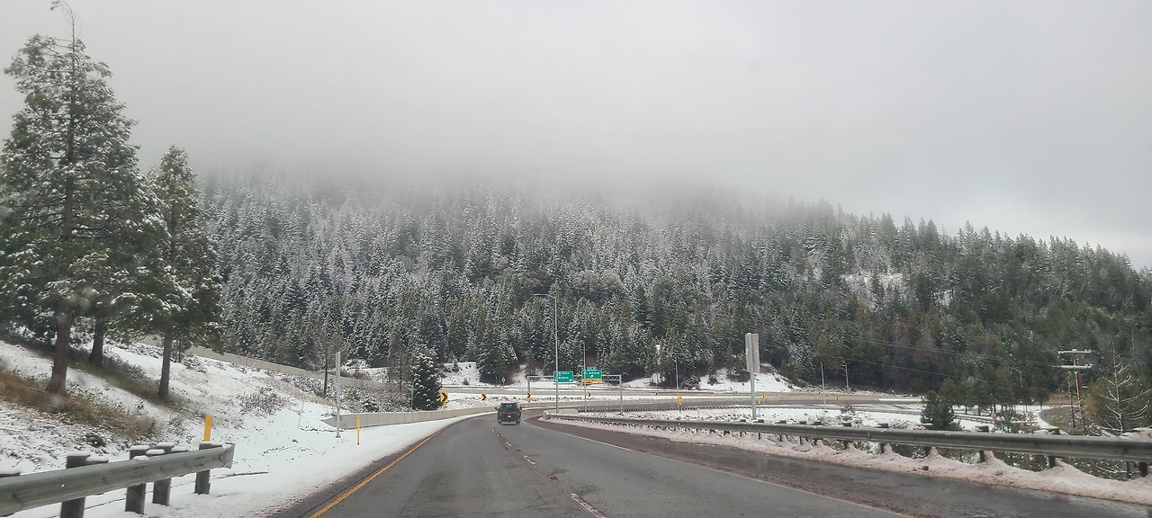 오늘은 캘리포니아 북부의 겨울을 맞이한 큰 산, Mt. Shasta를 넘어야 한다. 눈 뜨자마자 기상예보를 확인한 남편이 염려하던 폭설예보는 다행히도 없다고 한다. 여정에 한 시간 정도 추가될 것을 각오하더라도 우회길로 가야 할지도 모른다고 했던 터였다.