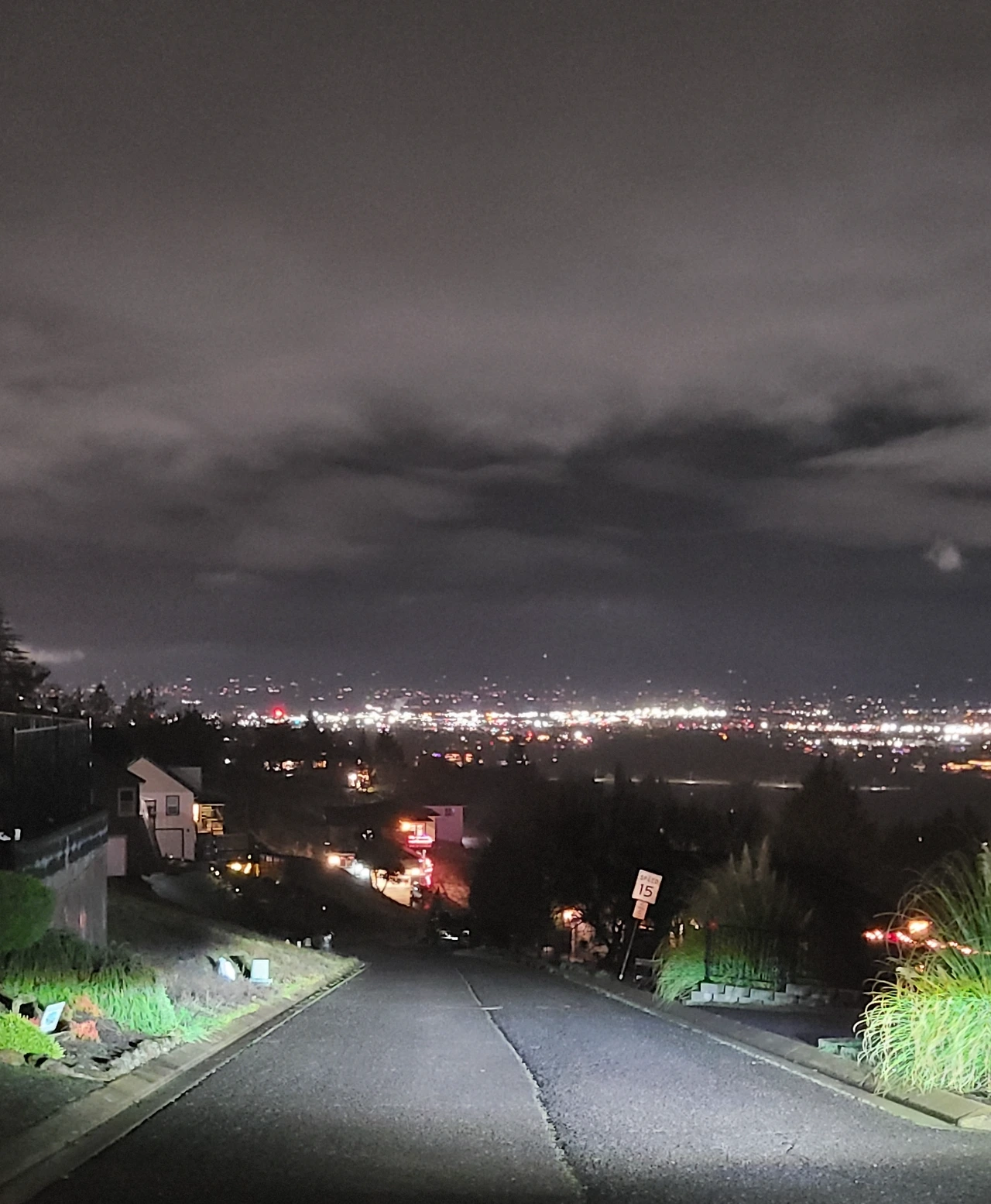 돌아오니 낮에 보았던 동네 전경이 야경으로 바뀌어있다. 절로 아무 생각 없는 이가 된다.