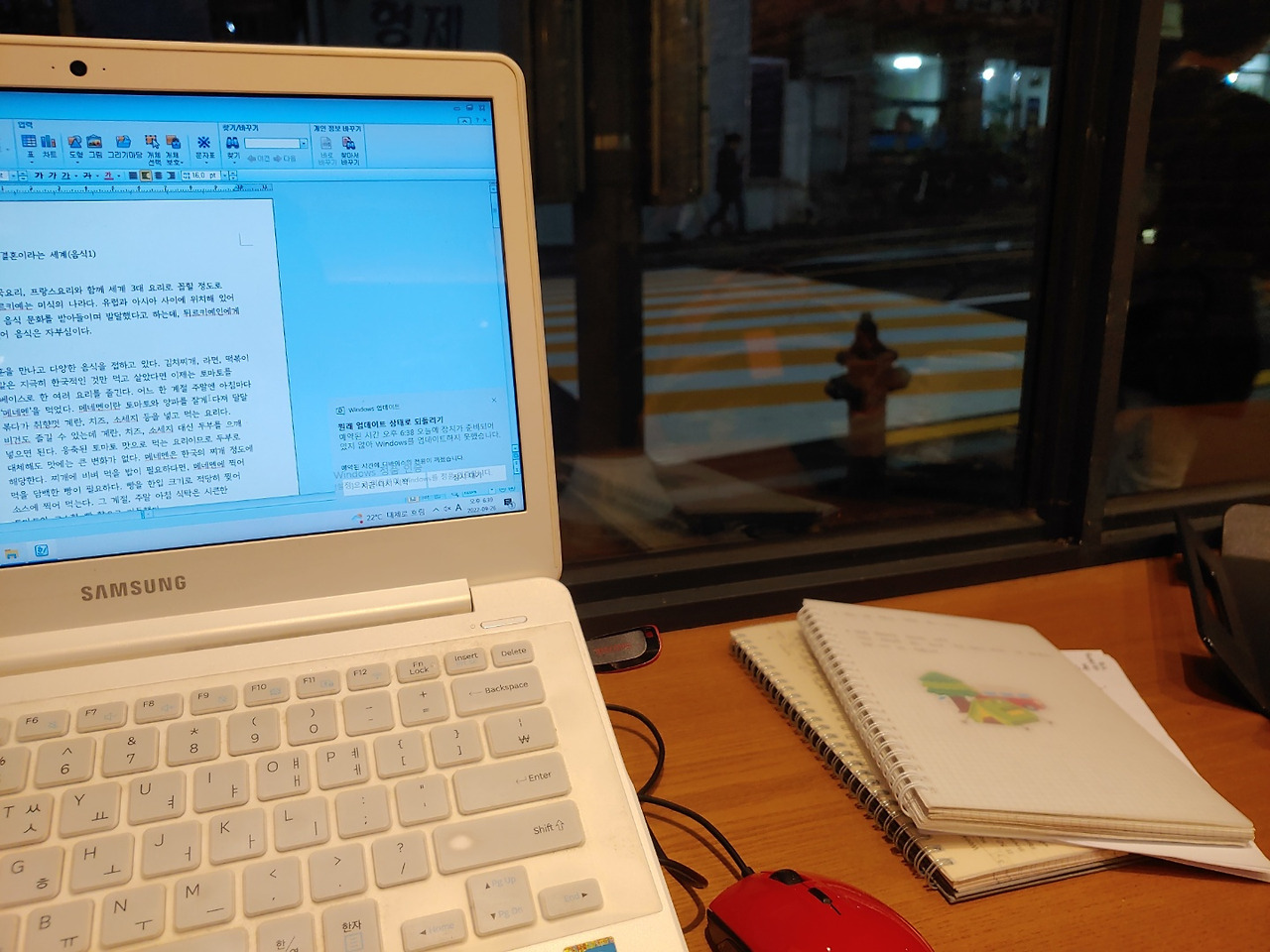 남편이 곧 도착한다는 소식입니다. 곧 9시 30분인가 봅니다. 서둘러 쓰던 것을 마무리하고 윈도우 종료 버튼을 클릭합니다. 거북이 등딱지에서 꺼낸 노트북과 거치대, 마우스를 다시 주섬주섬 챙겨 뛰쳐나가듯 커피숍을 나섭니다. 아무도 없는 컴컴한 집에 남편이 먼저 들어가기를 바라지 않습니다. 환한 미소로 그를 반기고 싶습니다.