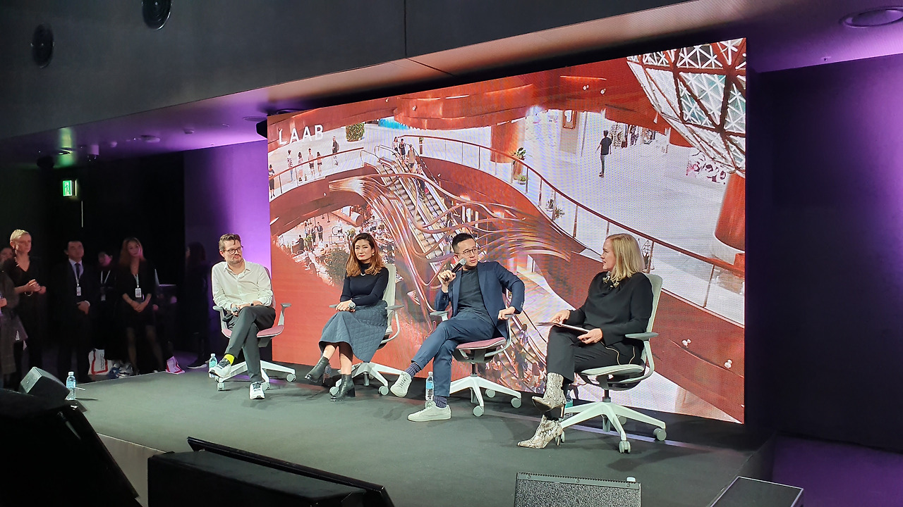 - 홍콩의 K11 MUSEA 만들 때 내추럴한 색상의 도입을 생각했고, 매력적인 분위기를 나게 하기 위해 소재에 대한 고민을 많이 했다. 그런데 우리는 강철을 매우 유기적이고 유연하고 부드러운 소재로 활용하고 싶었다. 그래서 에스컬레이터 쪽에 거미줄 같은 구조물을 설치했다. 마치 천이나 직물 느낌의 유연한 느낌을 낼 수 있었다.