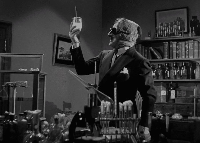 '기게스의 반지'에서 '투명'의 주인공은 제목에서 드러나는 것처럼 '반지'입니다. 반지의 신비로운 힘이 '기게스'를 투명으로 만들어줬기 때문이지요. 하지만 웰스의 '투명 인간'에서는 두 번째 단어, 즉 '인간'이 주인공입니다. 그리고 그 인간이란 바로 '과학자'입니다. 소설 '투명 인간'의 주인공은 광학을 연구하는 의사인 '그리핀'인데요. 그는 오랜 화학 실험을 통해 신체의 굴절률을 공기의 굴절률과 똑같이 변형하여 '스스로의 노력으로' 투명한 사람이 됩니다. (물론 여기서도 완벽하지 않은 기술이 문제가 되어 원상태로 돌아가질 못합니다.. 또르륵) 이처럼 '투명인간'도 우연이나 신의 섭리가 아니라, 과학자의 의지에 따라 '만들어진 것'은 웰스의 생각이 최초입니다. 이후에 등장하는 투명 인간은 모두 본인의 의지로 만들어지는 존재이지요.