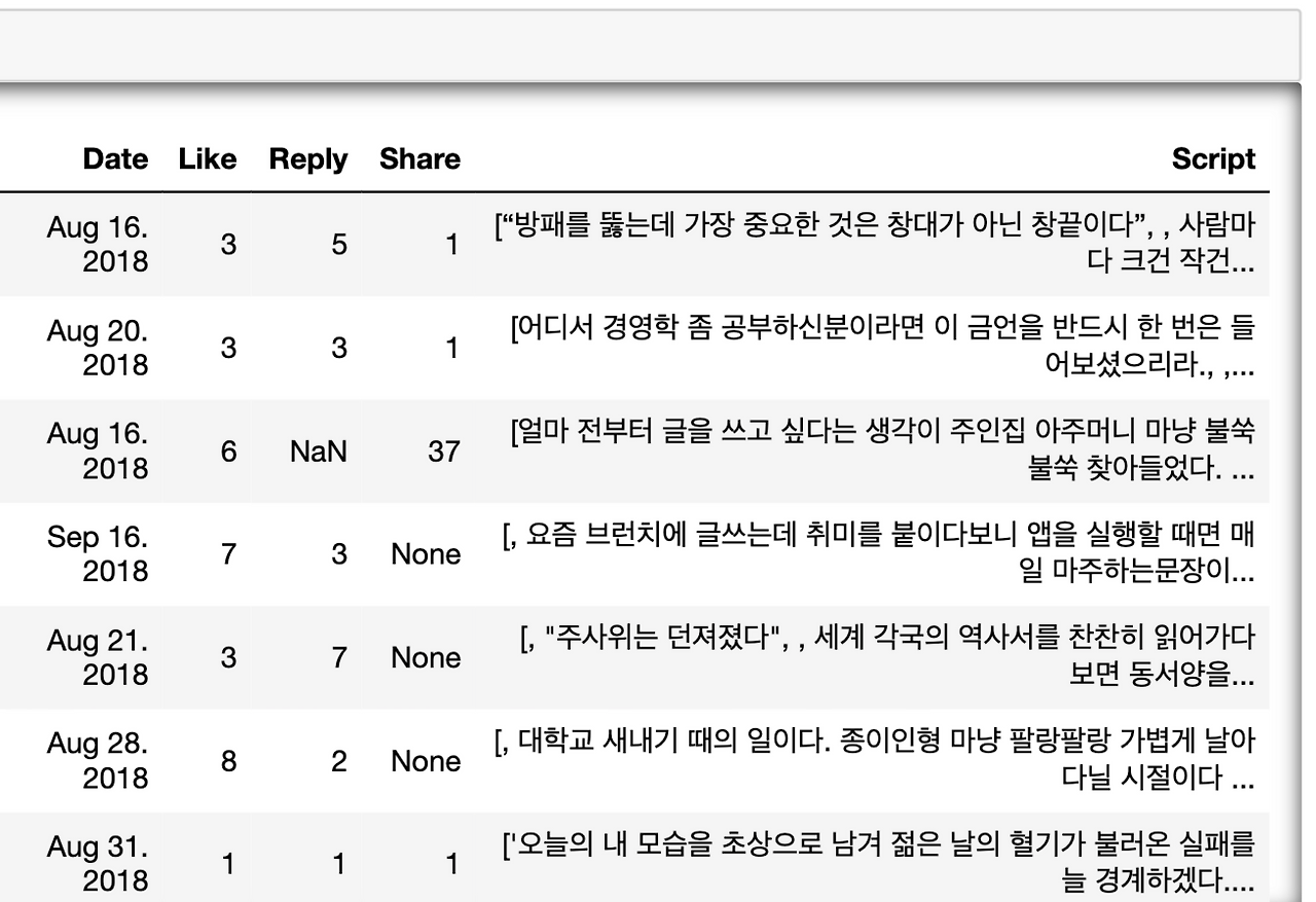 한가로운 일요일 오후, 야구 모자를 뒤집어쓰고 만성피로에 시달리는 디멘터처럼 집을 나섰다. 그리고 동네 앞 엔제리너스 제일 구석자리에 가서 브런치 웹 페이지 구조를 슥슥 살펴봤다. 생각보다 간단했다. 그래서 짧은 파이썬 코드를 툭툭 쳤다. 얼마 지나지 않아 내 브런치에 올라와있는 내용을 엑셀 파일로 정리해 차곡차곡 쌓아둘 수 있었다.