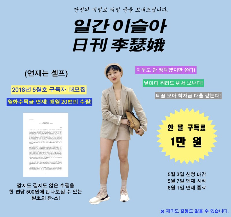 이 게으른 그래프를 보고 있자니 하루에 한편씩 글을 써서 보내셨다는 '일간 이슬아' 선생님이 생각났다. 그분은 얼마나 엄청난 작업을 하신 것일까. 내가 지금 당장 회사를 그만두고 매일 글을 써야 한다면 한 5일 차쯤 글의 제목이 '이력서'이지 않을까 조심스레 생각해본다. 꾸준한 글쓰기는 그만큼 어려운 것 같다.