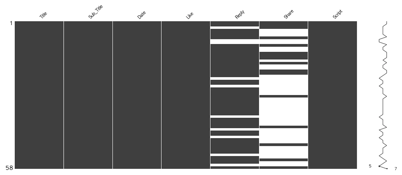 반면 내가 쓴 글은 공유가 잘 안 되는 편이다. 하긴 이렇게 하고 싶은 말 다 쓰는 개방형 일기장을 누가 공유하시겠냐만, 표로 보면 좀 더 확실하다. 위 표는 나의 브런치 데이터를 프레임 형태로 정리한 요약도다. 검은색 영역은 데이터가 있는 것이고 하얀색은 비어있는 공간이다. 슬쩍 보아도 공유(Share) 영역은 구멍이 숭숭 뚫려있는 것이 보인다. 이제는 단순한 뻘글보다 선한 영향력이 담긴 글을 써야겠다.(고 이 역시 다짐해 본다.)