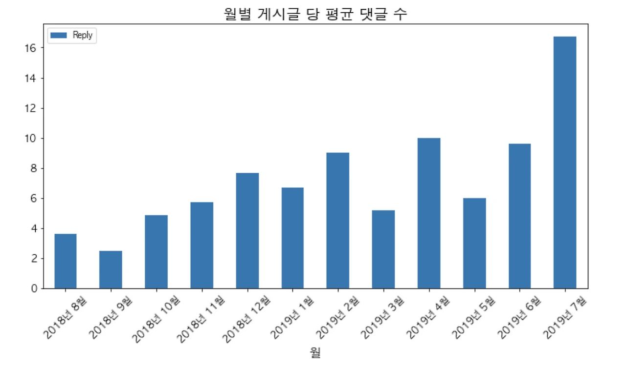 브런치에서 ‘인싸력(?)’을 보여주는 방증은 독자와 작가가 교환하는 댓글이 아닐까 생각한다. 무슨 댓글이건 서로에 대한 관심의 표현이니까. 위 그래프는 내 글에 지난 1년간 댓글이 얼마나 꾸준히 늘어났는지 보여준다. 앞서 살펴봤던 좋아요 수보다 훨씬 뚜렷한 증가세를 관찰할 수 있다. 다만 이런 댓글은 주제 별로 굉장히 큰 차이가 있었다. 영화나, 드라마 리뷰는 댓글이 거의 없는 편이고, 나의 일상에 관한 에세이는 댓글이 많다. 20대 후반, 요상한 사람이 보내는 하루는 댓글을 달기 굉장히 좋은 소재인 듯하다.