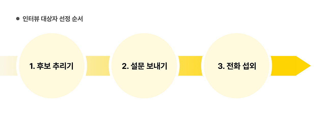 셋째, 추가 인터뷰에 동의한 사람을 대상으로 섭외 전화를 돌립니다. 이미 인터뷰에 동의한 분들과 진행하기 때문에 금방 끝납니다. 앞선 과정이 없다면 인터뷰 설명에도 시간이 오래 걸리고 높은 확률로 거절당합니다. PM이 힘든 전화를 반복하면 본능적으로 인터뷰를 싫어하게 됩니다. 인터뷰는 아침운동과 같아서 한두번 싫어지게 되면 꾸준히 안하는 악순환에 빠집니다. 인터뷰를 하고 싶은 환경부터 만드는 것이 중요합니다.