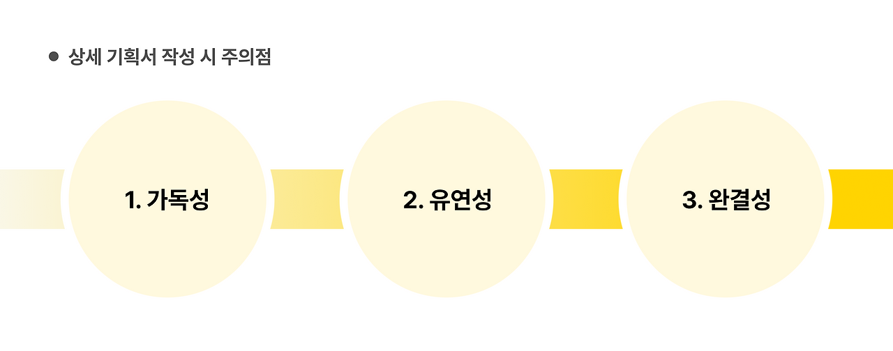 상세기획서를 쓸 때는 아래 3가지를 유념합니다.