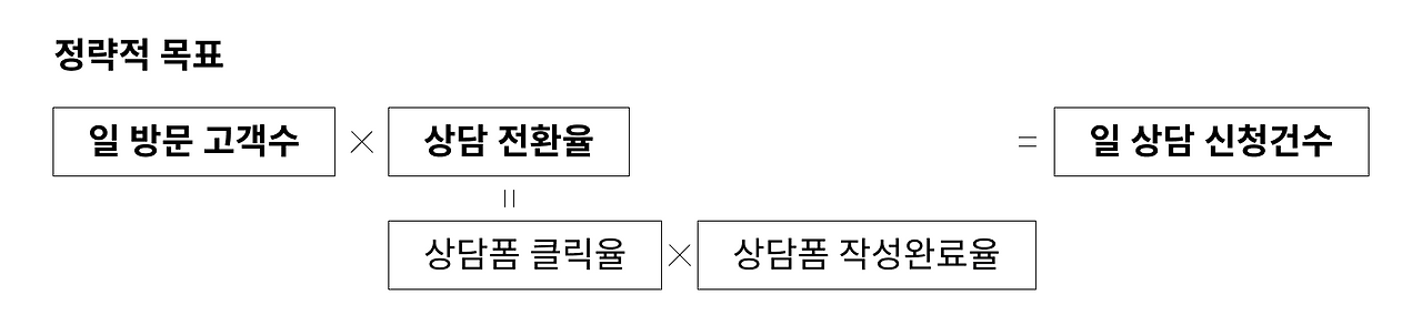 예를 들어 ‘고객의 가입 상담 전환율이 낮다’고 한다면 아래와 같이 원인을 설명합니다.