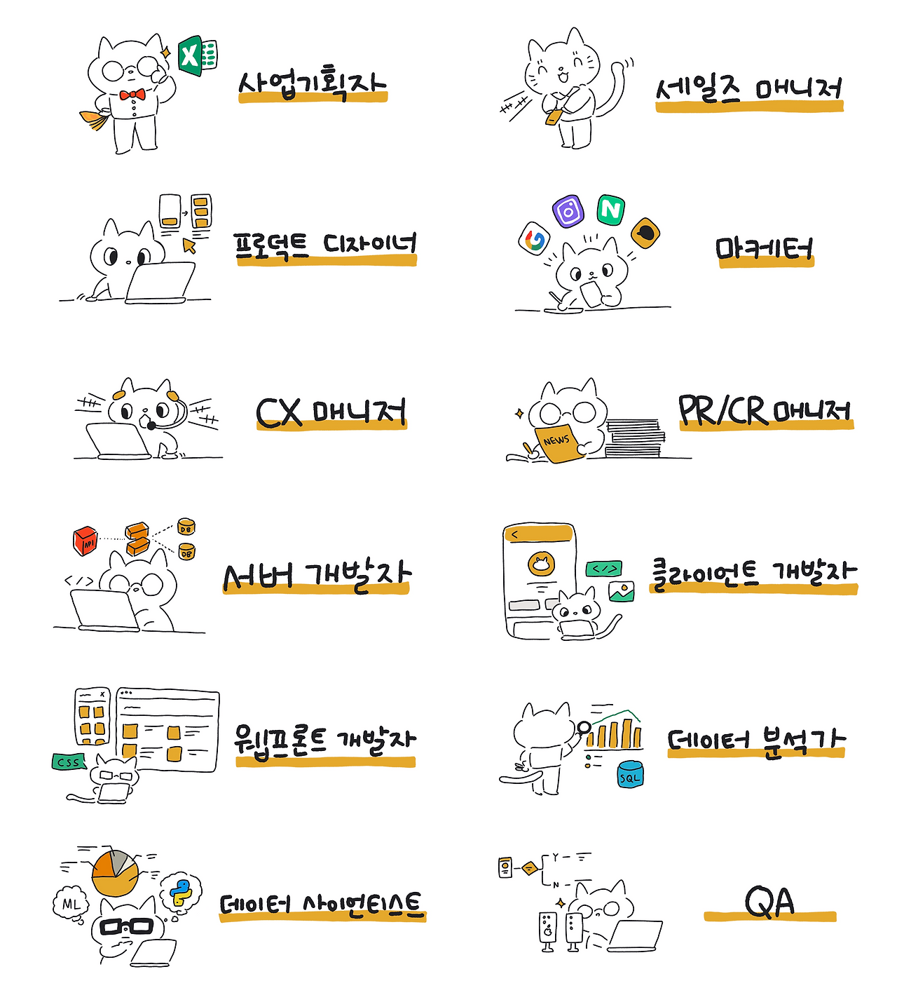 이번 챕터에서는 위 6개 직군 동료들의 업무를 알아보고, 함께 일하는 센스에 대해 이야기해 보겠습니다.