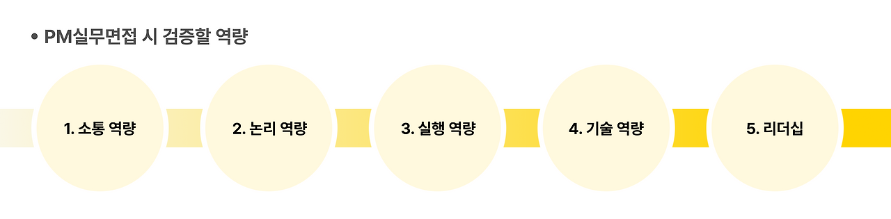 PM 실무 면접은 후보자의 5가지 역량을 검증합니다.