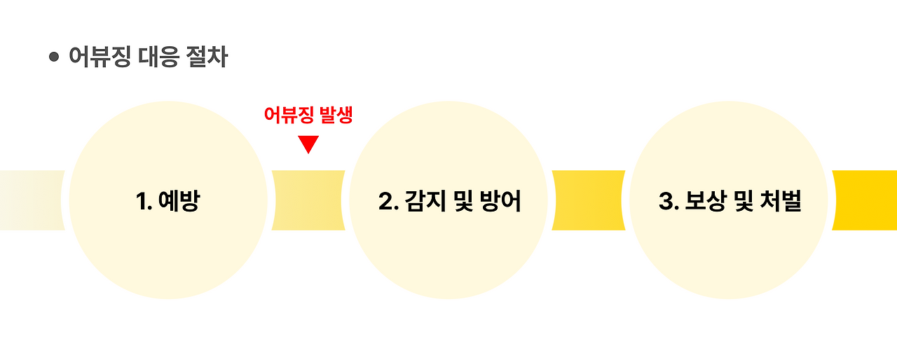 때문에 어뷰징 방어 정책을 잡을 때는 적발, 제재에 집중하기 보다 어떻게 하면 근본 원인을 제거할지 중심으로 생각합니다. 업무를 할때 항상 ‘내가 혹시 처벌 규정에만 너무 집중하는 것 아닌가?’, ‘이렇게 해서 예방이 될까?’ 와 같이 스스로 끊임없이 반문하면서 진행합니다.