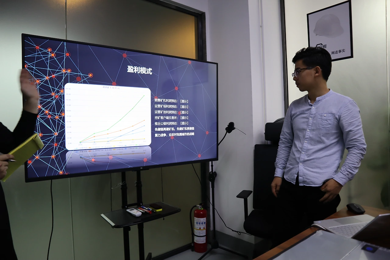 저희는 복합적인 수익모델을 가지고 있습니다. 현재는 채굴기 판매가 핵심이긴 하지요. 지금 눈앞에 보시는 것이 저희 채굴기 모델입니다. 대공방에 입주해 있는 스타트업이니 하드웨어 중심인 것이 당연하겠지요. 하지만 저희 회사는 채굴기에서 그치지 않을 겁니다. 저희는 데이터 저장 체계를 완전히 바꿀 수 있는 블록체인 생태계를 만드는 것이 꿈입니다.