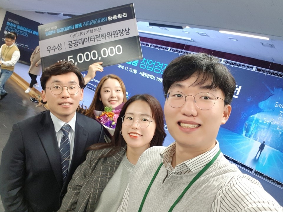 이때 우리 팀은 정말로 장려상만 받아도 행복하겠다고 생각하고 있었다. 하지만 갑자기 대상을 주시는 통에 너무 놀라 그 자리에서 소리를 지르고 말았다. 대개 SBS나 KBS에서 연말 시상식을 할 때면 호들갑 떠는 연예인들을 보며 '저 사람은 다 알면서 왜 저렇게 난리인가' 생각하곤 했었는데, 막상 태어나서 처음 큰 상을 받아보니 그분들이 10분씩 수상소감 하는 마음을 이해할 수 있었다. 우리 팀은 아직도 이때 상을 받은 것이 인연이 되어 심평원 관계자 분들과 함께 재미있게 서비스를 만들어 나가고 있다.