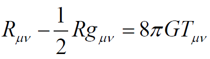 일반상대성 이론의 중력 방정식. 오른쪽에 있는 시공간안의 에너지가 왼쪽에 있는 시공간의 기하적 성질, 즉 중력을 정해준다. (출처: Science Blog)