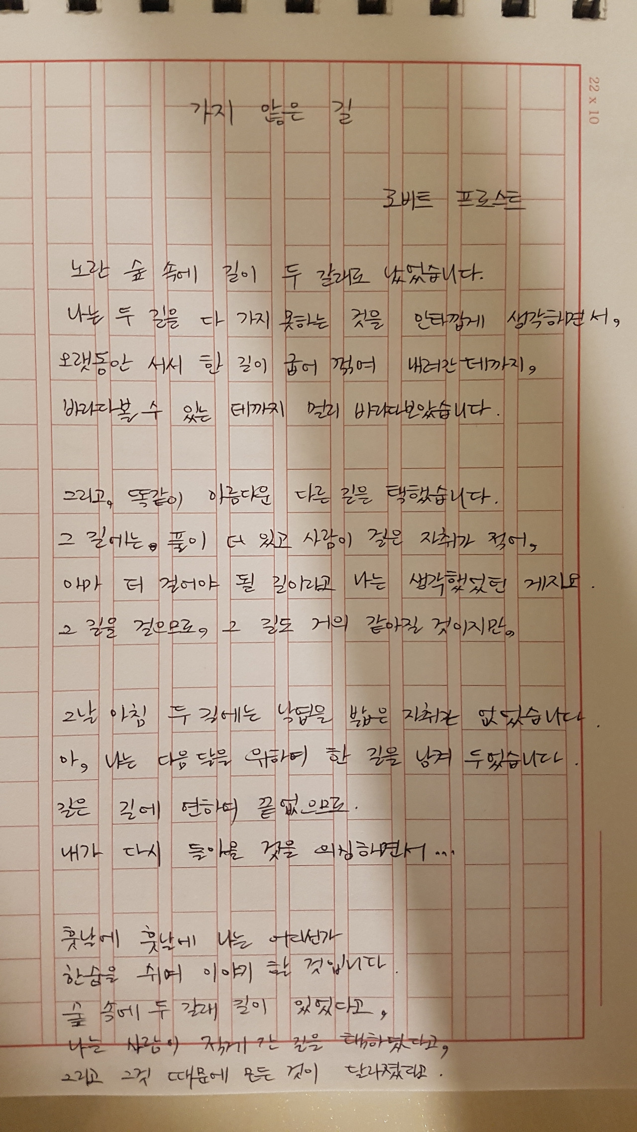 가지 않은 길 by 로버트 프로스트 / 피천득 옮김
