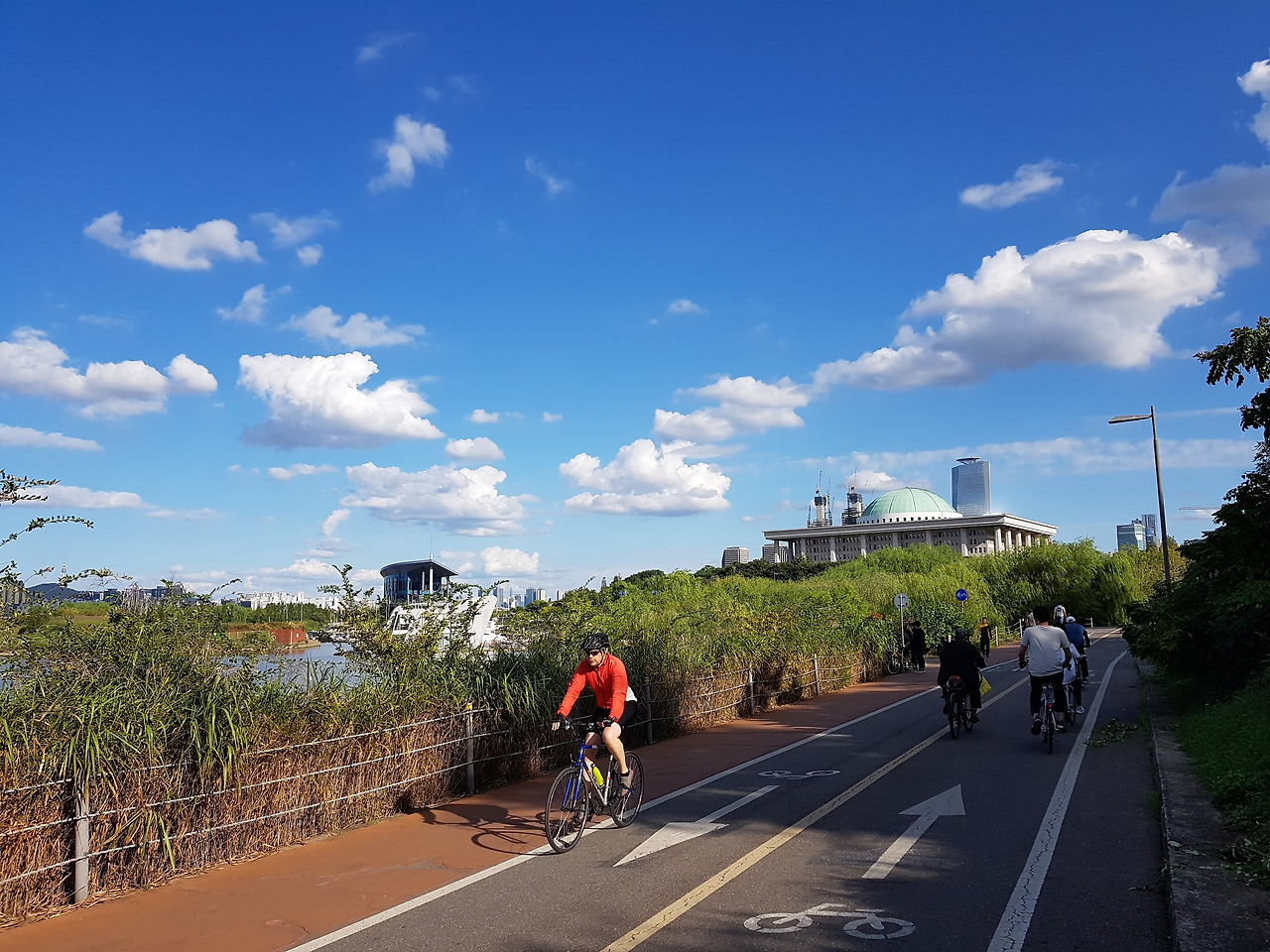 자전거가 가장 붐비는 여의도 공원 구간. 젊음의 열기로 언제나 뜨겁다.