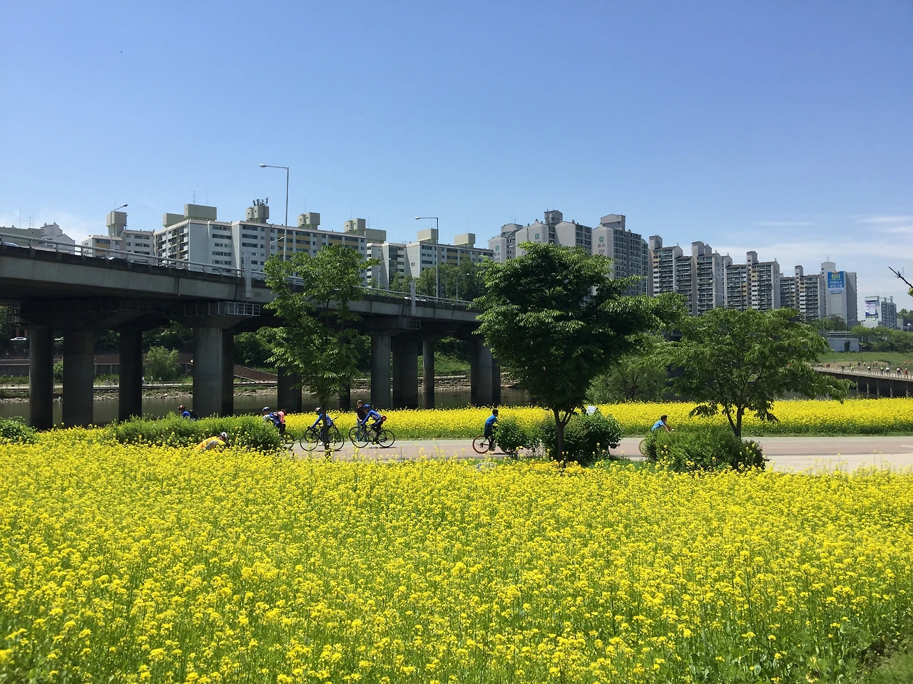 안양천 초입. 유채가 필 때면 한강의 자전거 행렬은 절정을 이룬다.