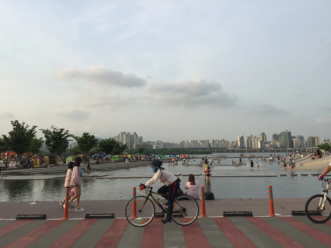 이렇게 단련한 자전거 솜씨로 나는야 늠름히 강변을 누빈다. 강이 없는 동네, 물의 발원지 근방에서 어린 시절을 보낸 나는 어른이 되어서야 강을 보았고, 흐르는 물을 좋아하게 되었다. “강”이라고 부를 때 콧등을 공명하는 발음도 좋고 유연한 물의 물성도 사랑한다. 무엇보다 그것은 끝없이 떠내려 간다. 늦봄의 홍천강과 겨울 경호강도 좋은데 서울의 한강을 아주 좋아한다. 계절과 상관없이 한강은 근사하다.