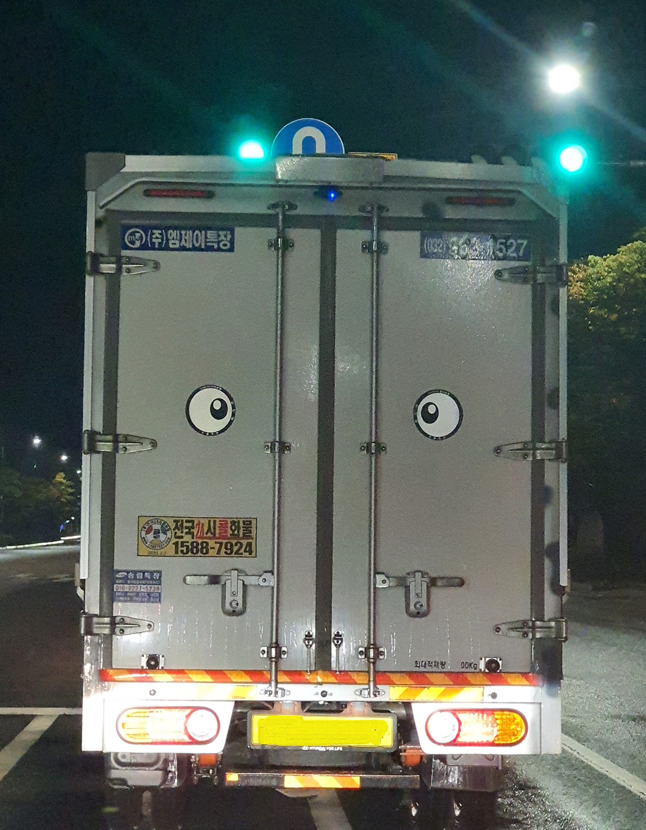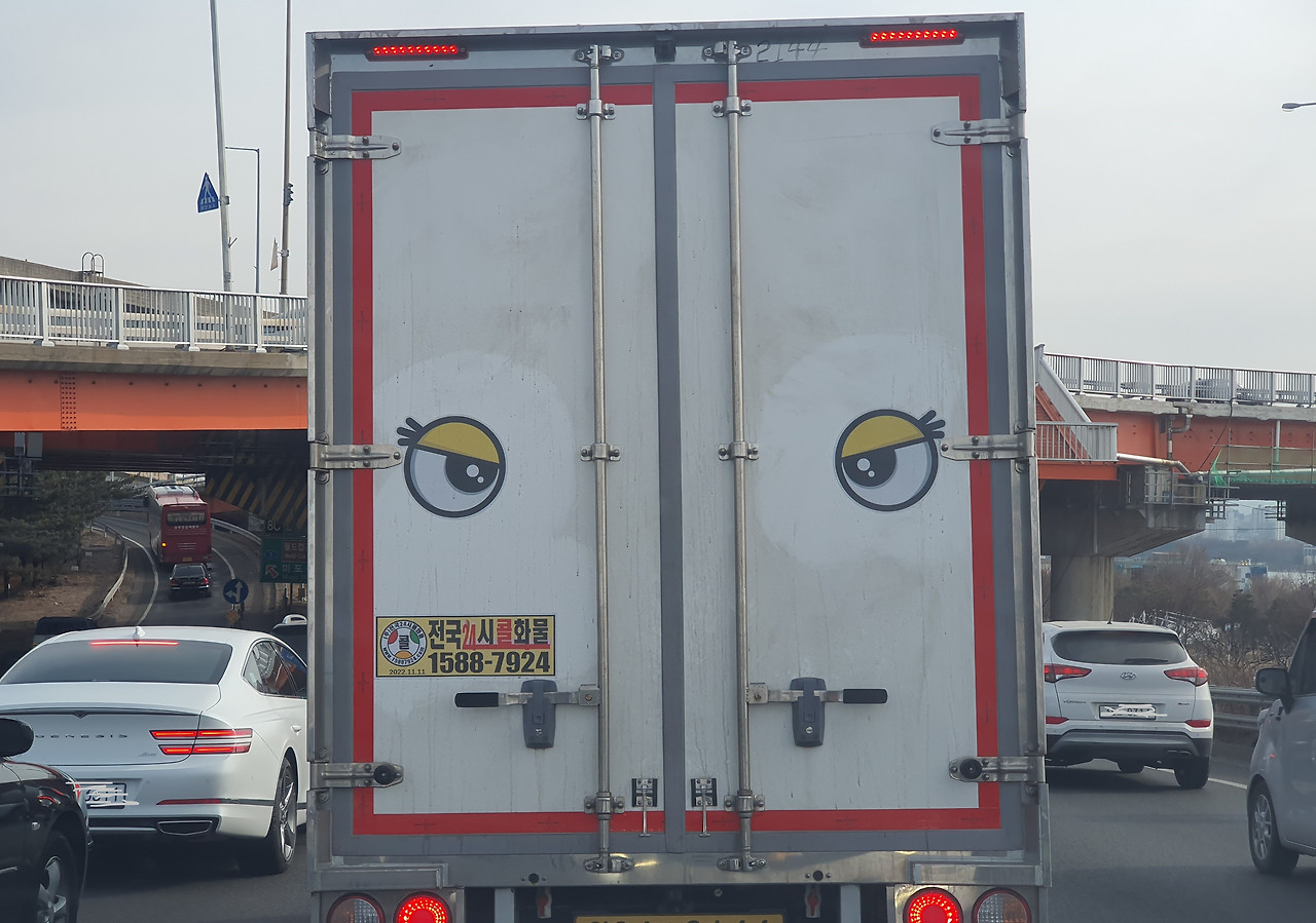 지금은 조금 익숙해졌지만 운전하다 트럭 뒤에 커다랗게 붙여진, 놀란 듯 귀여운 눈동자를 처음 봤을 땐 너무나 신기했다. “무서워요. 가까이 오지 마세요”라는 듯. 위협적이진 않지만 분명한 경고를 보내는 동그란 눈.