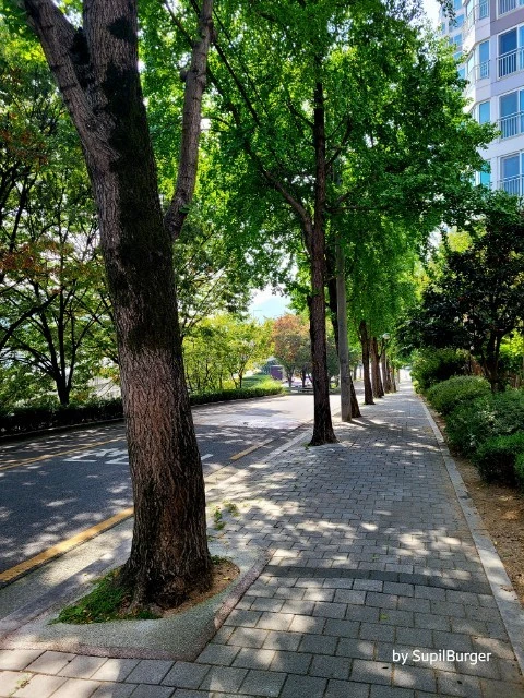 회사가 앞산 자락 끝 구릉 정도 높이에 있어서 육 차선 찻길을 건너 동네로 가는 길은 내리막이다. 산길을 걸을 때와는 반대로 산책 시작은 편하다.