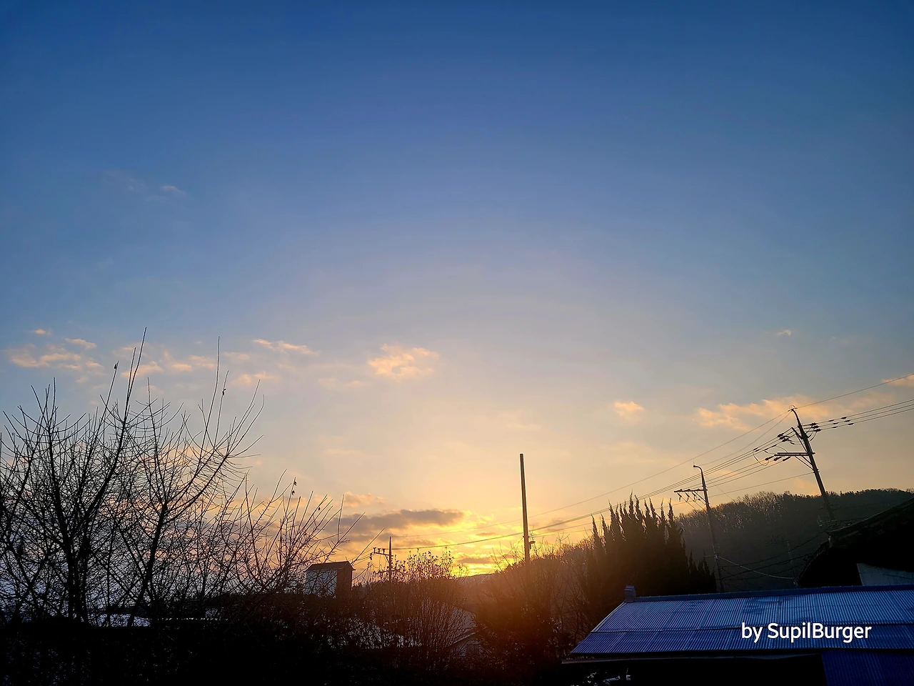 회사에서 50m쯤 걸어 나와 앞산(정확히는 용두산) 능선이 보이는 골목으로 내려갔다. 바다나 산 정상이었으면 예고 시간에 해가 떴겠지만, 산으로 둘러싸인 동네에선 아직 해가 보이지 않는다. 10분쯤 밖에 서 있으니 춥다.