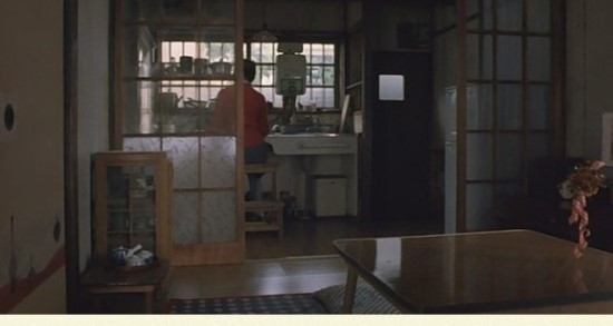 영화 초반에 나오는 구미코의 방은 책이 여기저기 탑처럼 쌓여 너저분하다. 탁자는 밥상, 찻상으로만 쓰인다.
