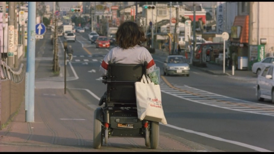 영화의 마지막은 전동 휠체어를 타고 장을 보고 집으로 돌아가는 구미코를 보여준다. 유모차도, 츠네오의 등도, 이제 더는 필요 없다. 카메라가 천천히 훑으며 보여주는 구미코의 방에는 한 권의 책도 보이지 않는다. 이불은 개켜져 있고 바닥은 깨끗하다. 밥을 먹고 차를 마시던 탁자도 말끔히 치워져 있다.