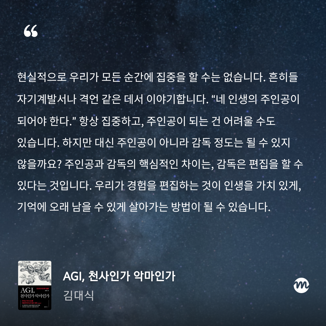 먼 훗날, 내가 주인공으로 연기한 장면들을 늘어놓고 편집을 할 것이다.