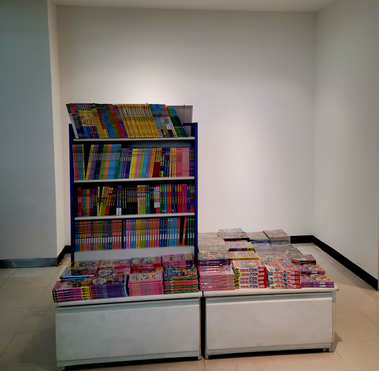 2호 샵인샵은 할인점 안에 자리 잡은 (대략) 백 평짜리 문구점이다. 약간 뚱뚱한 직사각형 매장의 삼분의 이는 전형적인 20세기 문구점 모습이고, 나머지 삼분의 일 정도는 아동 서적과 땡처리 책들이 꽂힌 서가가 쭉 들어서있다. 설득의 힘이 약했던지, 탐냈던 1/3을 다 바꾸지는 못하고 두 면이 만나는 구석자리 세 평 정도만 우선 사용하기로 했다. 판매가 괜찮으면 1/3 전체를 대책회의로 바꾼다는 합의도 했다.