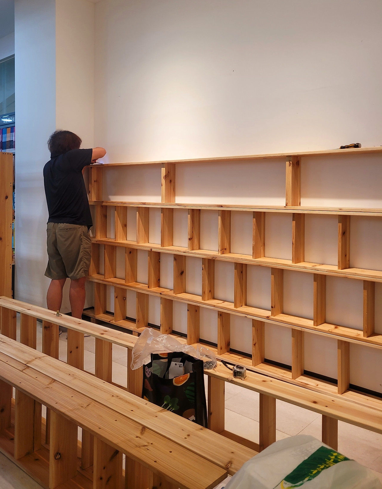 기억 자로 꺾인 벽면 중 긴 쪽은 삼 미터가 넘었다. 대책회의 운영진으로도 활동하는 친한 동생의 나무 공방에서 반조립 상태로 만들고, 내 카니발에 세 번 나눠 실어 나르기로 했다.