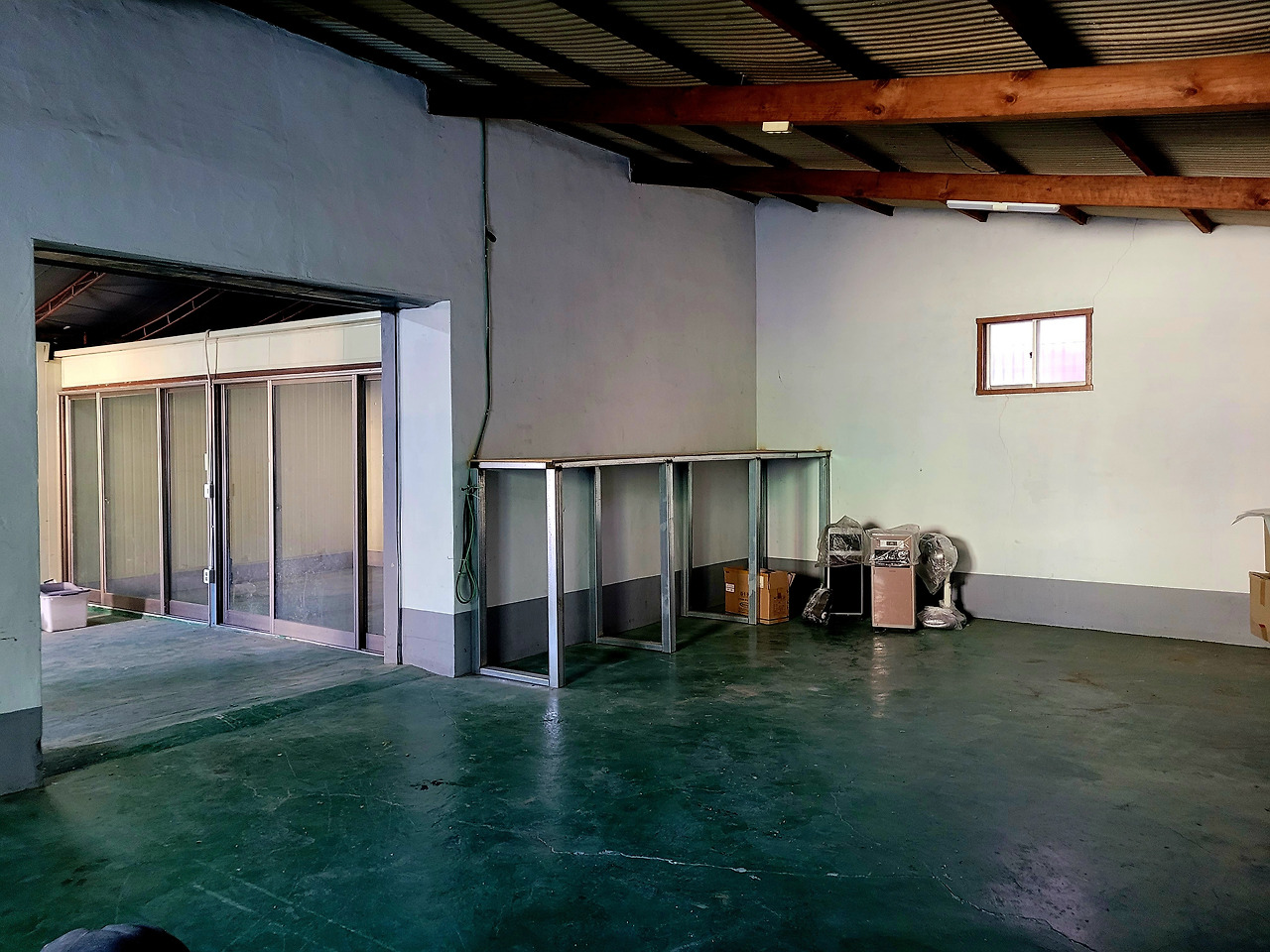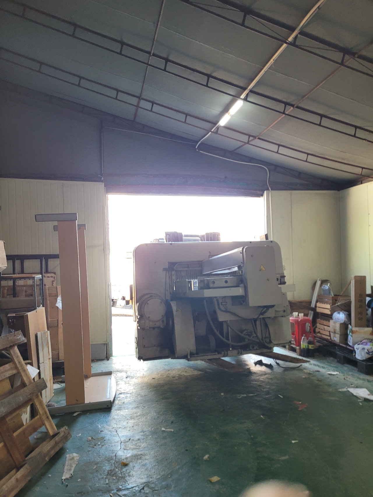 공장은 두 구간으로 나뉘어 있는데, 5톤짜리 지게차는 너무 커서 가운데 통로를 통과하지 못했다.